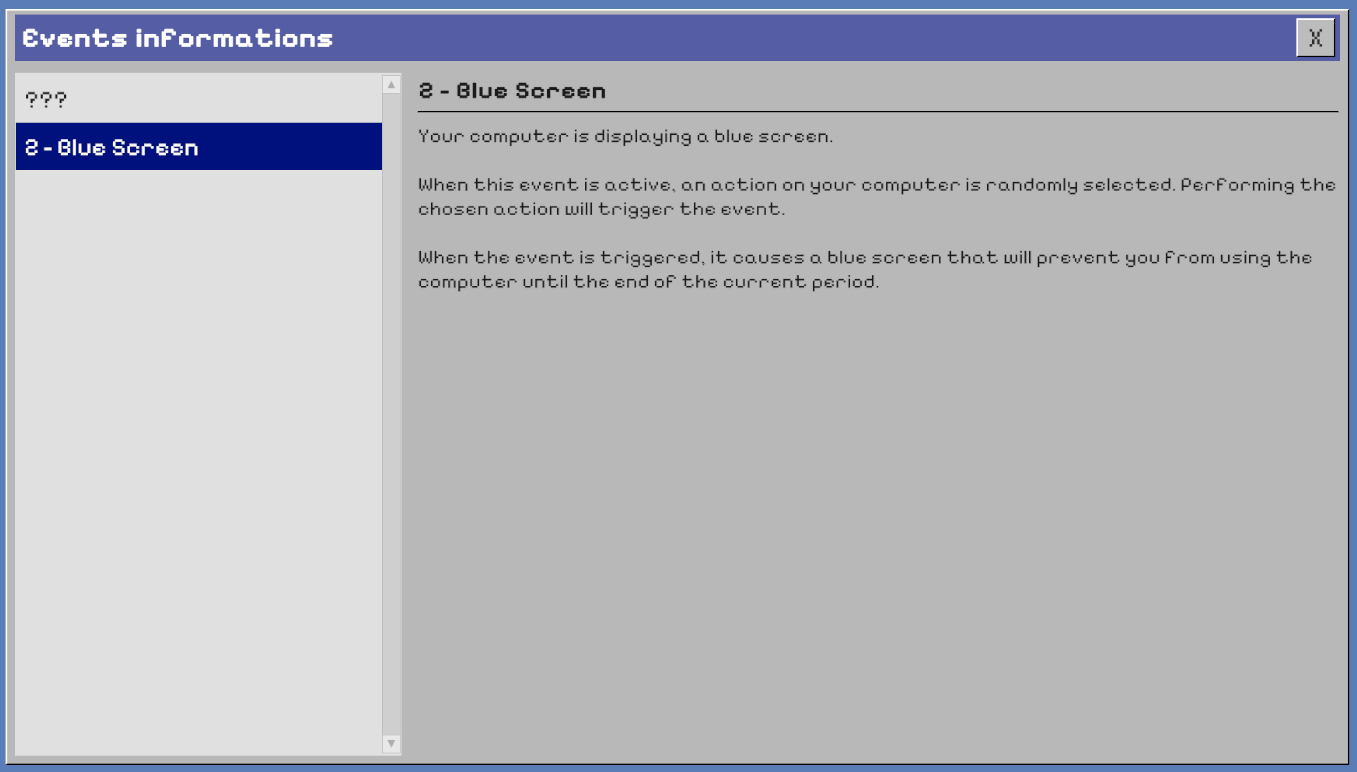 -> An Events Informations page, to help you understand how the events work, and what they do.